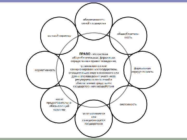 Признаки права. 5. Системность – все правовые нормы между собой взаимосвязаны и взаимодействуют, т. е. представляют систему, а не простое множество правил поведения. 6. Волевой характер, т. е. закрепляет волю народа, если государство демократическое либо какого-то класса, социальной группы, что обусловлено экономическими, национальными, религиозными и иными условиями жизни этого общества.
