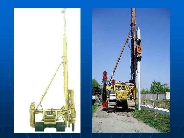 Вдавливание (задавливание) свай. Логическим развитием методов погружения свай является метод вдавливания (задавливания) свай. Он сочетает в себе высокую скорость работы, отсутствие какихлибо ударных или вибрационных нагрузок на грунты, что позволяет производить работы в историческом центре города или на сложных грунтах. Технология не зависит от типа грунта и применяется при устройстве свайного поля на любом типе грунтов, за исключением скальных. Пожалуй единственным недостатком этого метода является относительно высокая стоимость оборудования, определяемая его конструктивными особенностями. К несомненным преимуществам технологии вдавливания свай относятся: отсутствие лидерных скважин, отсутствие любых вибро и ударных нагрузок на грунт и окружающие сооружения, очень высокая скорость работы.