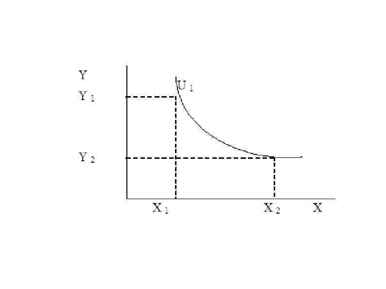● Основным рабочим понятием порядковой теории полезности является предельная норма замещения благом X блага Y, которой называют количество блага Y, которое должно быть сокращено «в обмен» на увеличение количества блага X на единицу, с тем чтобы уровень удовлетворения потребителя остался неизменным.