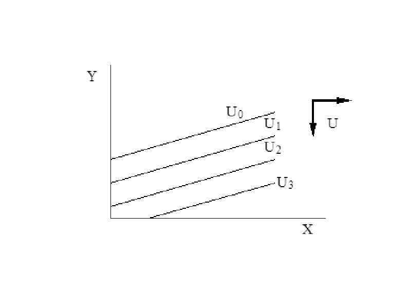 ● Функцию полезности для набора (X, Y) с благом Х можно и антиблагом Y можно представить в виде U(X, Y)=a. X-b. Y, где X – благо, Y – антиблаго; а>0 и b>0 – параметры.