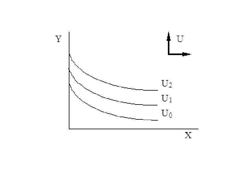 ● ● Если заполнить двухмерную плоскость кривыми безразличия так плотно, как это возможно, получим карту безразличия. Карта безразличия – совокупность кривых безразличия, описывающих поведение одного потребителя.