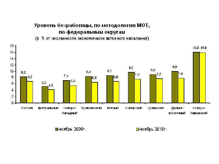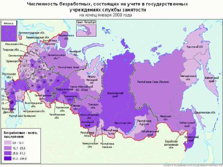 Безработица. В конце февраля 2009 г. , по оценке, 6, 4 млн. человек, или 8, 5% экономически активного населения, классифицировались как безработные (в соответствии с методологией Международной Организации Труда). В государственных учреждениях службы занятости населения в качестве безработных было зарегистрировано 2, 0 млн. человек, в том числе 1, 7 млн. человек получали пособие по безработице