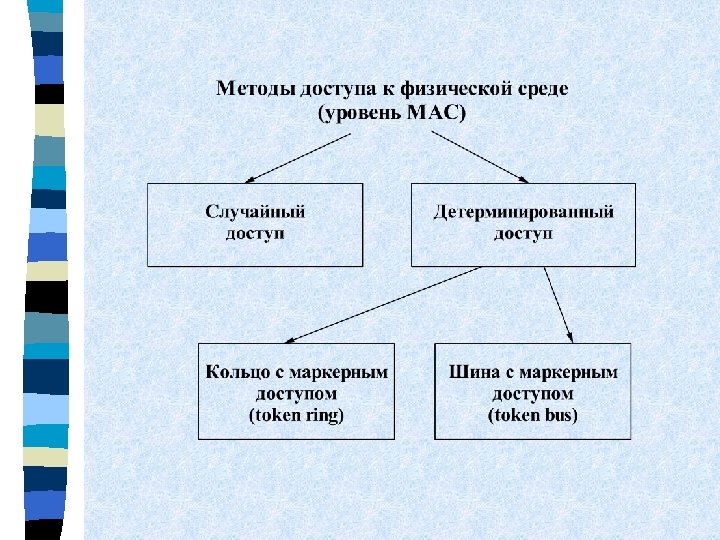 Метод случайного доступа Ethernet Ориентирован на среду типа “общая шина” 9. 6 мксек Шина 1 2 Коллизия (jam) 3 1 1 Попытка доступа Прослушивание Попытка доступа Узел 1 Ожидание Узел 2 Ожидание Узел 3 Пауза = L Интервал отсрочки L [0, 2 N], N - номер попытки, N 10 Пауза = [0, 1024 Tотсрочки] = [0, 524288] = [0 мкс, 0. 52 с]