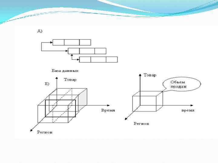 В отличие от реляционной базы данных (показанной для сравнения на рис. а) срез позволяет подготовить информацию для принятия решения о том, какие товарные группы следует сворачивать, а какие развивать в различных регионах.