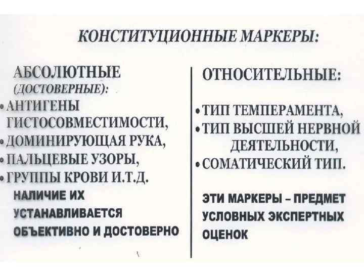 1. Наследственность. 2. Возраст. 3. Пол. 4. История жизни. 5. Конституция организма.