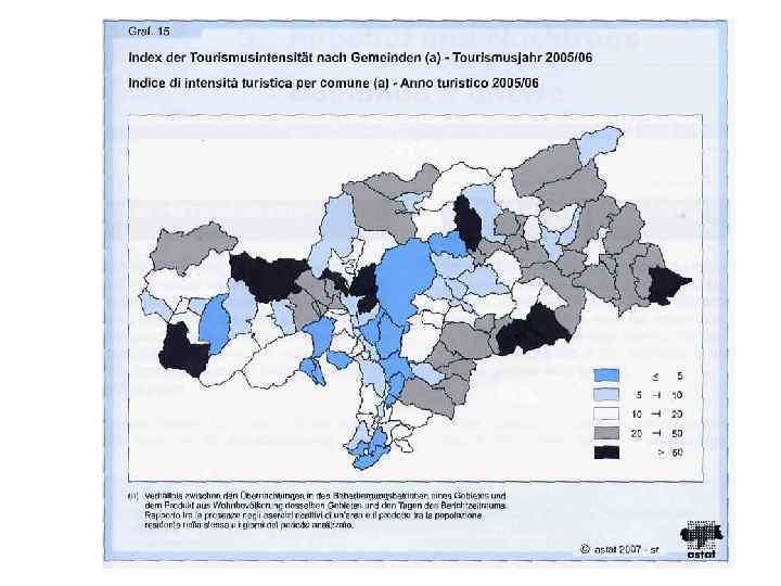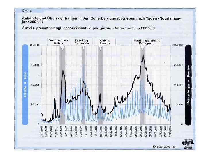 Аналитические показатели туристских потоков (на примере Южного Тироля) • величина туристского потока в дестинацию (посещения и ночлеги); • динамика туристского потока (среднегодовой рост посещений и ночлегов); • географическая структура туристского потока; • индекс интенсивности туристских потоков