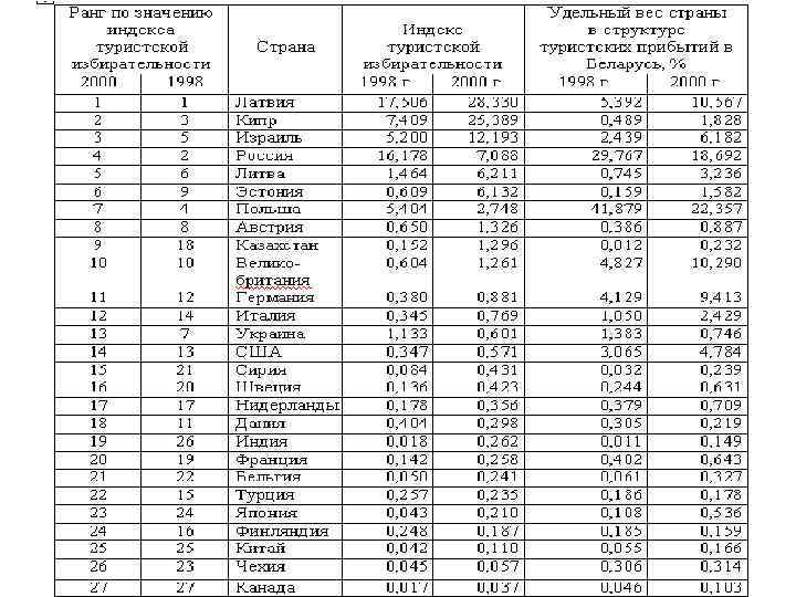 Индекс туристской избирательности Д. Г. Решетникова Iизб = (Тij / Тj) (Тi / Тмир), Tij – количество иностранных посетителей из страны i в стране j; Tj – общий въездной поток иностранных посетителей в стране j; Ti – общий объем выездного туризма в стране i; Tмир – общее мировое количество туристских прибытий