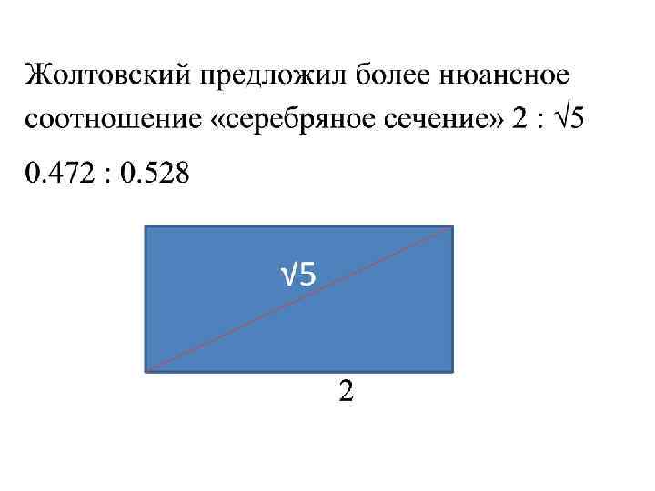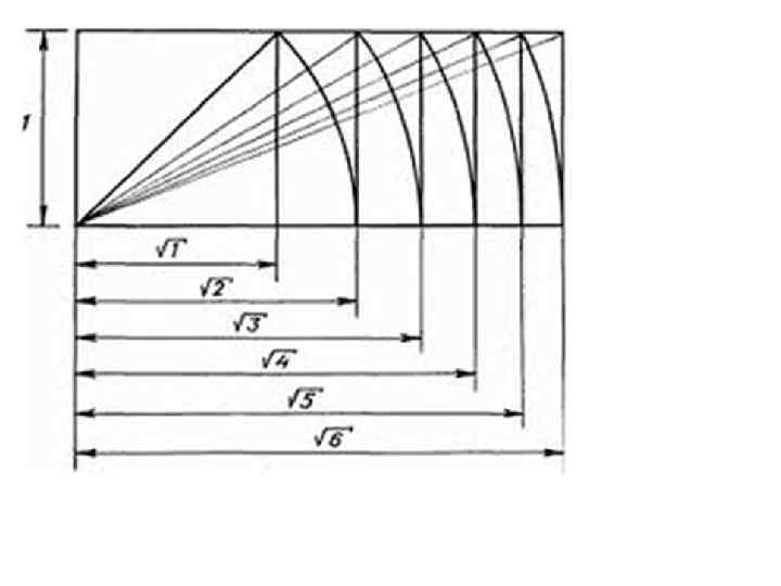 • ІРРАЦІОНАЛЬНІ співвідношення основані на геометричній закономірності їх побудови. 1. Відношення діагоналі кварату до його сторони. • • • А: Б = 1: √ 2 Пропорційний ряд 1: √ 2