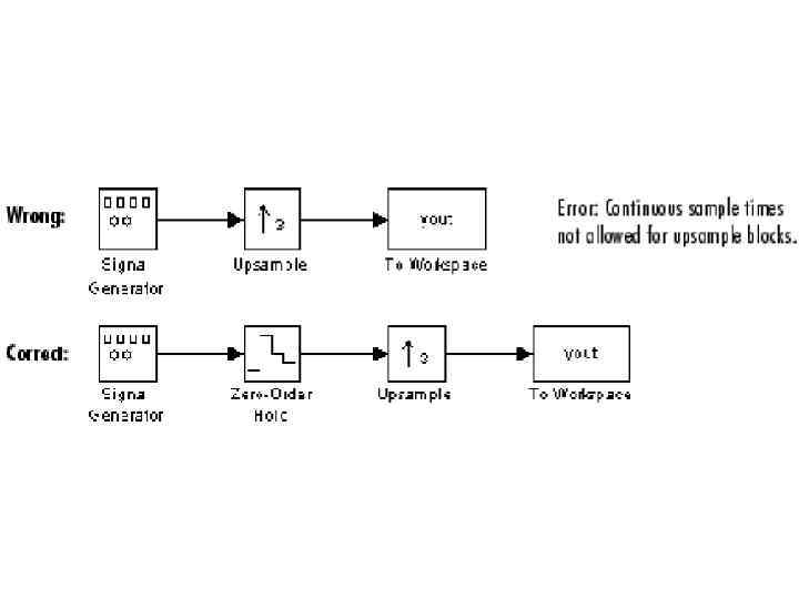 При следующих параметрах конфигурации дискретный сигнал немного отличается от классического понятия, рассмотренного выше, тем что сохраняет определенное значение между моментами выборки: Type Fixed-step |Solver: Discrete| Fixed-step size: auto |Tasking mode: Single tasking| В момент выборки сигнал может менять свое значение, сохраняя его между выборками. Как следствие, SIMULINK допускает такие операции, как сложение сигналов с разными скоростями выборки. При параметрах конфигурации Fixed-step, Multitasking, дискретные сигналы не определены в интервалах между моментами выборки. SIMULINK выдает сообщение об ошибке, когда производится попытка обратиться к неопределенному участку сигнала, как и при сложении двух сигналов с разными скоростями выборки. При использовании дискретные сигналы остаются определенными между моментами выборки. При выборе Auto setting, SIMULINK автоматически устанавливает режим, соответствующий задаче, руководствуясь заранее указанным критерием. Как правило, для моделей с несколькими критериями выборки устанавливается Multitasking mode.