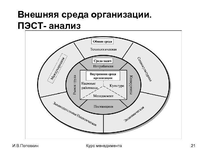 Внешняя среда организации. ПЭСТ- анализ И. В. Поповкин Курс менеджмента 21
