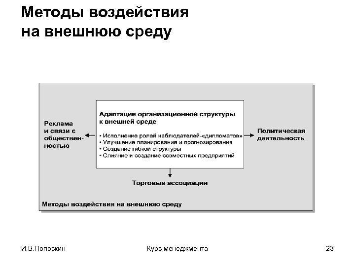 Методы воздействия на внешнюю среду И. В. Поповкин Курс менеджмента 23