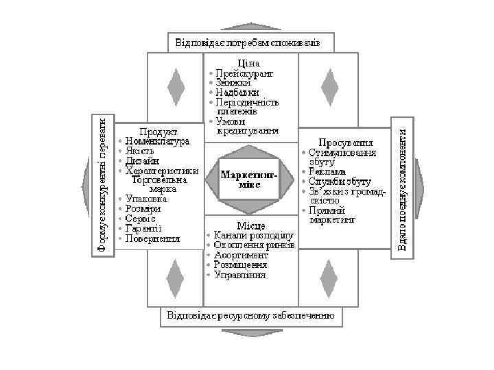 В цілому завдяки маркетинговому плануванню можливо: • • • • аналізувати ринок і передбачати ринкові тенденції. Через це компанія буде постійно "налаштована" на ринок з його тенденціями; бути в курсі потреб споживачів, глибоко і повно розуміти побажання покупців, у тому числі й потенційних покупців підприємства; знати про те, що роблять конкуренти, боротися і перемагати конкурентів; знати сильні і слабкі сторони своєї організації у порівнянні з конкурентами; розробляти і налагоджувати виробництво конкурентоспроможних товарів і послуг; обґрунтовувати закладені у плані прогнози; визначати цілі і стратегії маркетингу; ефективно використовувати всі види наявних ресурсів; правильно реагувати на несподіваності на ринку і з боку конкурентів; структуризувати і балансувати маркетинговий комплекс ("маркетинг-мікс"); створювати максимальну мотивацію серед персоналу; оптимізувати використання всіх видів обмежених ресурсів; позиціонувати компанію та продукти з тим, щоб досягти стабільності і росту на мінливих ринках.