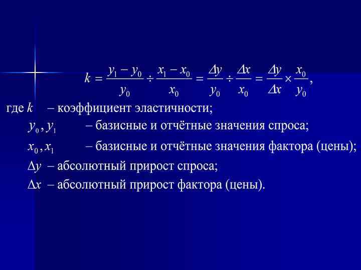 Степень чувствительности спроса к различным факторам характеризуется эластичностью. Тесноту этой связи можно оценить с помощью коэффициента эластичности, который показывает размер процентного изменения объёма спроса на товар при однопроцентном изменении фактора (цены, дохода, и т. д. ).