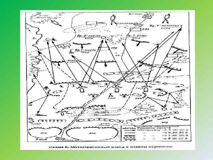 При постановке задач отделениям (танкам) командир взвода в боевом приказе указывает: командир мотострелкового взвода задачи отделениям, их позиции, полосы огня и дополнительные секторы обстрела, основ ые и запасные огневые позиции боевых машин пехоты н (броне ранспортеров), основные и дополнительные секторы т обстрел с каждой позиции; командир танкового взвода задачи танкам, их основные запасные огневые позиции, основные и дополнительные сектор обстрела с каждой позиции. Кроме того, командир взвода в боевом приказе определяет время занятия позиции, готовности системы огня. очередность сроки инженерного оборудования позиций.