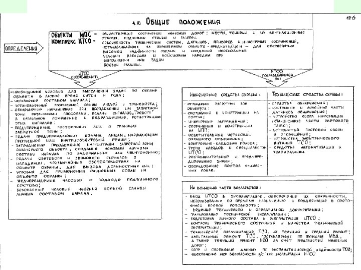 Основные термины и определения КОМПЛЕКС ТЕХНИЧЕСКИХ СРЕДСТВ ОХРАНЫ. Совокупность технических средств охраны: средств обнаружения, управления доступом, сбора, обработки и представления информации, средств наблюдения, служебной связи и оповещения, вспомогательных средств, установленных в запретных зонах, режимных помещениях (зданиях, сооружениях), на транспортных средствах, контрольно-пропускных пунктах, а также на территории и в караульных помещениях охраняемых объектов, функционально связанных между собой и используемых войсками в системах охраны охраняемых объектов. КОМПЛЕКС ИНЖЕНЕРНО-ТЕХНИЧЕСКИХ СРЕДСТВ ОХРАНЫ. Совокупность инженерных средств охраны – сооружений и заграждений – и комплекса технических средств охраны, функционально связанных между собой и применяемых комплексно в запретных зонах, режимных помещениях (зданиях, сооружениях), на контрольно-пропускных пунктах, специальных транспортных средствах и на местности при выполнении войсками служебно-боевых задач по охране объектов.