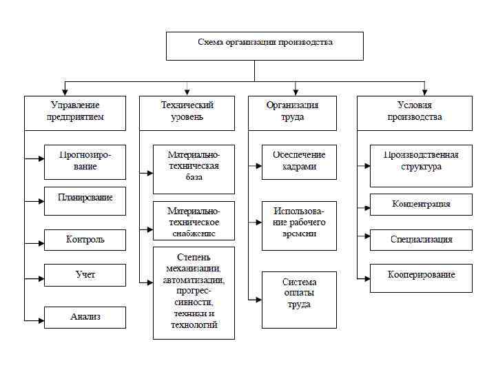 3. Оценка уровня управления и организации производства необходима для установления рациональности систем, форм, методов и структур управления, которые обеспечивают более полное использование производственных резервов, сокращение численности управленческого аппарата и расходов на его содержание, ликвидацию непроизводительных затрат. Цель анализа – выявить возможности совершенствования структуры управления предприятием, повышения эффективности производства. Основными слагаемыми организационного уровня предприятия являются уровень организации труда, уровень организации производства, уровень организации управления.