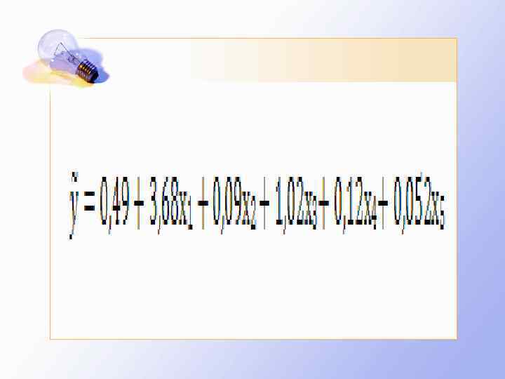• где У - рентабельность продаж, руб. /руб. ; • Х 1 -материалоотдача. руб. /руб. ; • Х 2 -фондоотдача, руб. /руб. ; • Х 3 - производительность труда, руб. /чел. ; • Х 4 - продолжительность оборота оборотных средств, дней; • Х 5 - удельный вес продукции высшей категории качества.