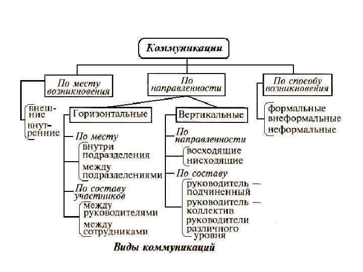 Классификация • Между организацией и внешней средой: реклама, PR, отчеты • между различными уровнями организации по вертикали: – по восходящей (отчеты, предложения, служебные записки) – по нисходящей (указания, приказы, информационные материалы) • Горизонтальные (обмен опытом, деловые переговоры) • между руководителями и подчиненными (постановка задач, мотивация) • формальные и неформальные (служебные отношения и слухи, утечка информации) • вербальные и невербальные
