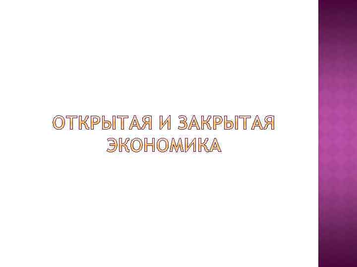 Модель открытой экономики предполагает свободу эконо мической деятельности как внутри страны, так и за ее преде лами. Открытая экономика — экономика, где все субъекты экономических отношений могут без ограничений совершать операции на международном рынке товаров, услуг, капиталов и прочих факторов производства. В отличие от закрытой экономики используется 1. свобода внешнеторговых сделок, 2. плавающий (регулируемое плавание, через валютные резервы и нормативы) валютный курс