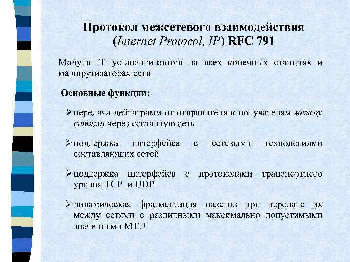 Тема 5. Протокол межсетевого взаимодействия IP n. Основные функции n. Структура пакета n. Таблицы маршрутизации n. Маршрутизация n. Сети без использования масок и подсети n. Маршрутизация n. Фрагментация с использованием масок