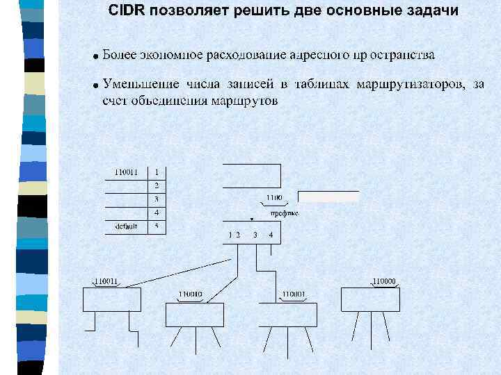 Сеть 129. 44. 0. 0 Маска 255. 128. 0 215 узлов 129. 44. 192. 1 129. 44. 192. 2 129. 44. 0. 1 Сеть 129. 44. 128. 0 Маска 255. 192. 0 214 узлов 129. 44. 128. 3 Сеть 129. 44. 192. 0 129. 44. 224. 5 Маска 255. 248 8 узлов Сеть 129. 44. 224. 0 Маска 255. 224. 0 213 узлов Структуризация сети масками переменной длины