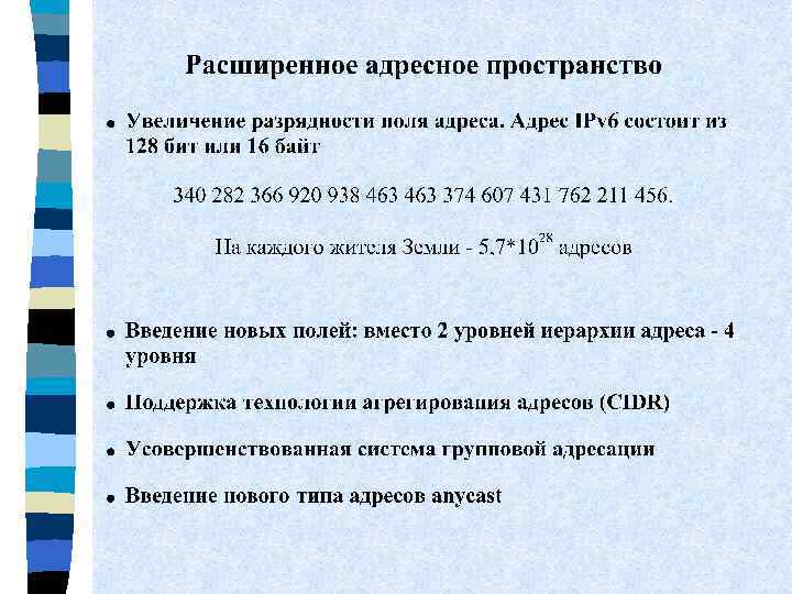 Тема 7. IPv 6 n. Причины модернизации n. Расширенное адресное пространство n. Гибкий формат заголовка n. Снижение нагрузки на маршрутизаторы n. Переход с IPv 4 на IPv 6