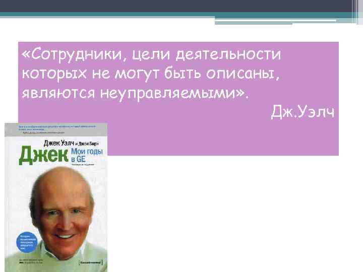 «Сотрудники, цели деятельности которых не могут быть описаны, являются неуправляемыми» . Дж. Уэлч