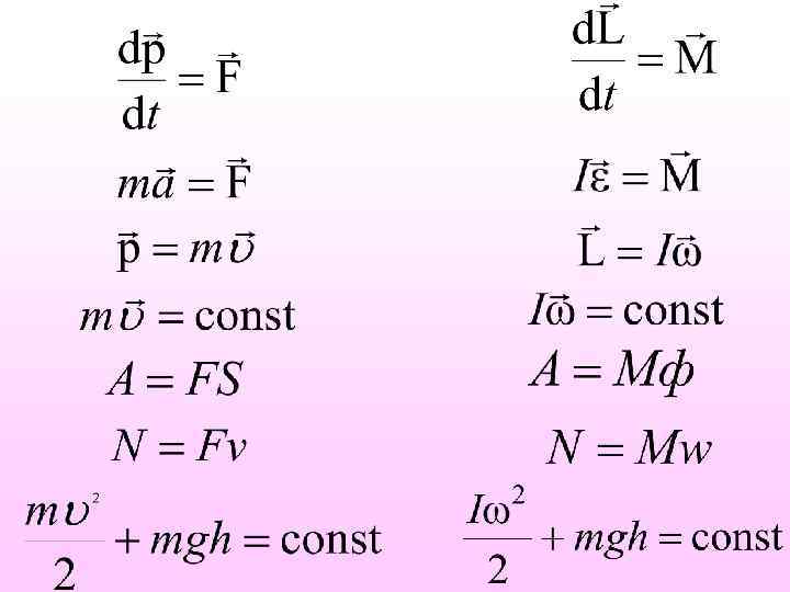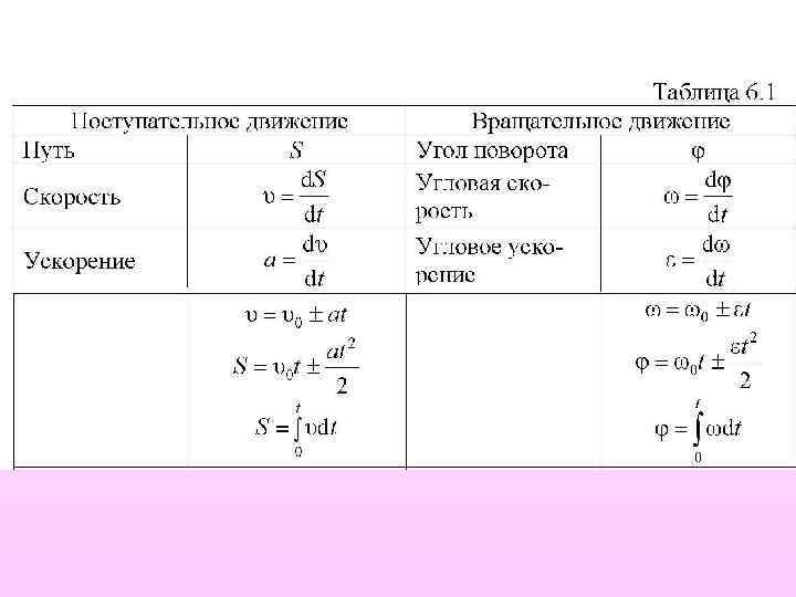 6. 7. Сходство и различие линейных и угловых характеристик движения Формулы кинематики и динамики вращательного движения легко запоминаются, если сопоставить их с формулами поступательного движения (см. таблицу 6. 1).