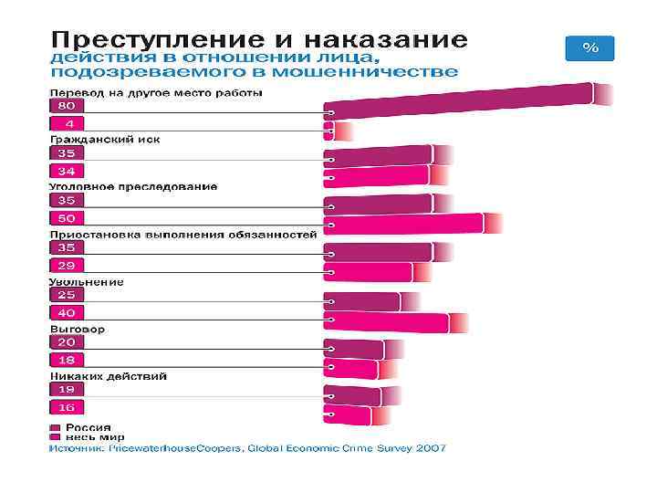 Виды преступлений, % Источник: журнал «Финанс» , 2008, № 18. Шляпа не горит