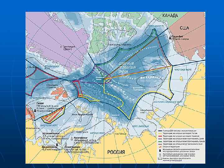 К Арктике прилегают территории пяти государств мира: Российской Федерации, n США, n Канады, n Дании, n Норвегии. n