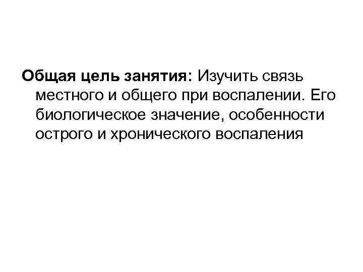 Общая цель занятия: Изучить связь местного и общего при воспалении. Его биологическое значение, особенности острого и хронического воспаления