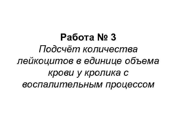 Работа № 3 Подсчёт количества лейкоцитов в единице объема крови у кролика с воспалительным процессом