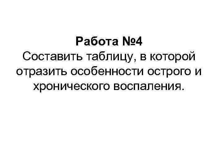 Работа № 4 Составить таблицу, в которой отразить особенности острого и хронического воспаления.