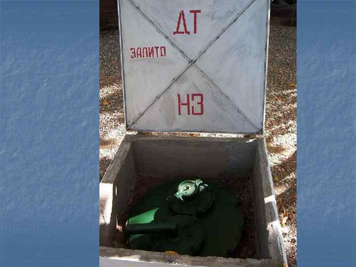 n Для предупреждения случайного смешения горючего при сливе в резервуары пункта заправки, а также исключения ошибок при заправке техники, все средства хранения и заправки должны иметь четкую и легкозапоминающуюся маркировку. Содержание маркировки и места её нанесения определены приказом Зам. МО РФ 1994 г. № 105 и Руководства по работе ВСГ, объектов и средств заправки горючим В и ВТ. n