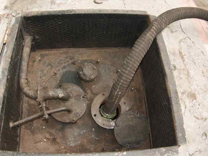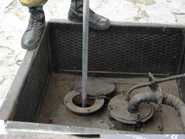 Над горловинами резервуаров устанавливаются колодцы из кирпича или бетона. Размеры колодца зависят от размеров оборудования, размещаемого в нём. Сверху колодцы закрываются металлическими крышками, имеющими уклон для стока дождевых вод