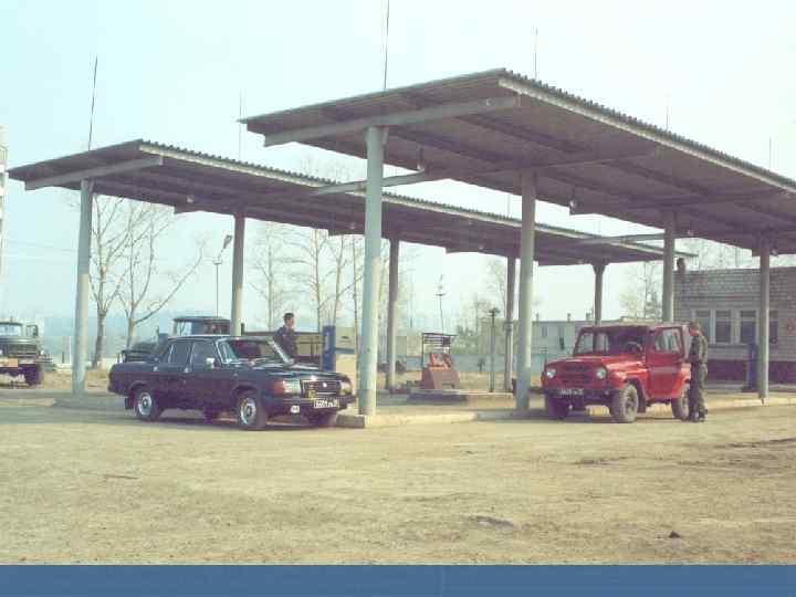 Стационарный пункт заправки горючим должен отвечать следующим требованиям: 1. Размещаться на территории автопарка с учётом технологического, потока обслуживания машин, возвращающихся из рейса. Из рейса Пункт мойки Пункт заправки горючим КТП ПТОР Стоянка техники