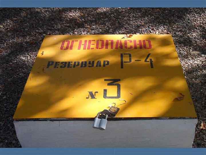 Литература: 1. Эксплуатация складов ракетного топлива и горючего. Учебник. М. : Воениздат, 1992. 2. Руководство по работе ВСГ, объектов и средств заправки горючим ВВТ. М. : Воениздат, 2003. 3. Ведомственные нормы проектирования складов для хранения легковоспламеняющихся и горючих жидкостей. ВСН-III-83. М. : ВИ, 1985