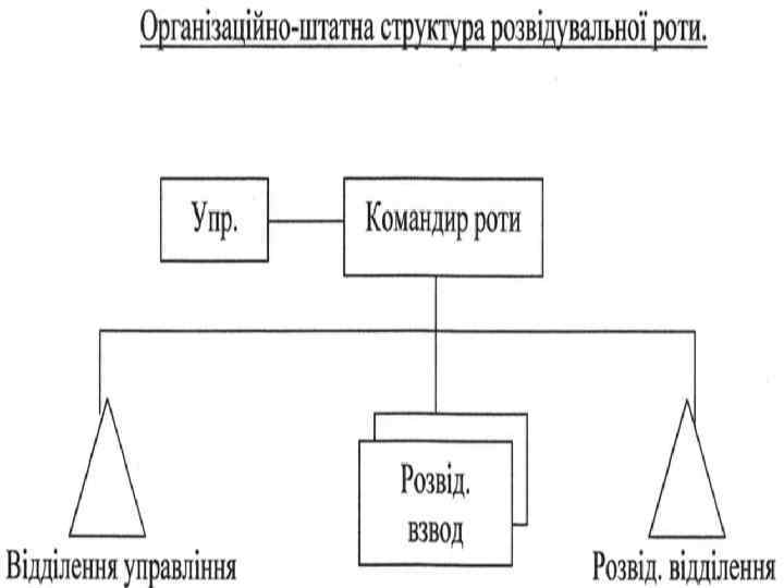 Розвід. рота Розвідувальна рота призначена для ведення розвідки з метою добування інформації противника і райони воєнних дій, а також для виконання спеціальних завдань.