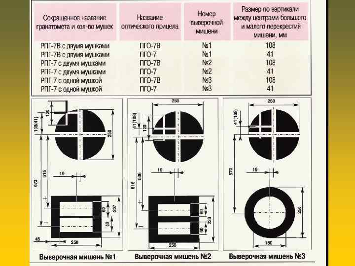 РПГ-7 В Проверка прицельных приспособлений гранатомета производился: — при поступлении гранатомета в подразделение; — после первой стрельбы и затем после каждых 3— 5 стрельб; — после ремонта гранатомета; — при обнаружении во время стрельбы значительных отклонений средней точки попадания (СТП) от точки прицеливания.