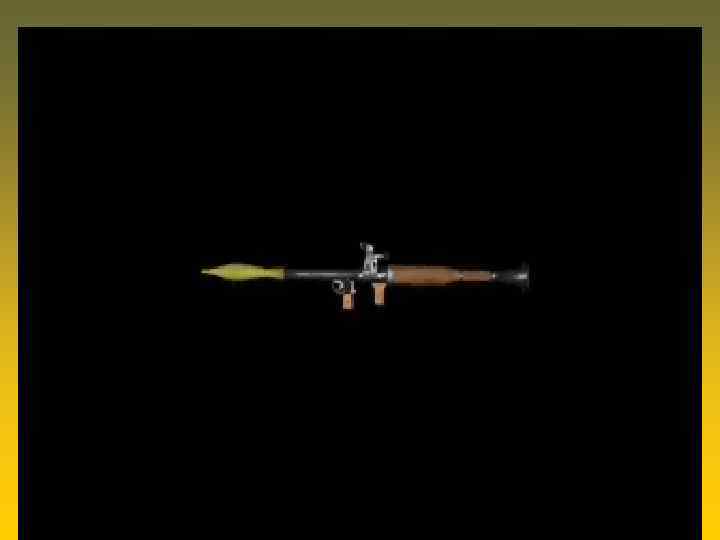 Наименование Год производства Калибр гранат-та, мм Калибр гранат, мм ПГ-7 ВМ (ПГ-7 ВЛ) Прицельная дальность, м - при использовании гранаты ПГ-7 ВЛ ДПВ по цели высотой 2 м, м (эффективн. ) выстрелом ПГ-7 ВМ (ПГ-7 ВЛ) Вес гранатомета, кг РПГ-7 Боевая скорострельность в/мин Нач. скорость м/сек гранаты ПГ-7 В гранаты ПГ-7 М (ПГ-7 ВЛ) Макс. скорость м/с Вес гранаты с пороховым зарядом, кг ПГ-7 ВМ (ПГ-7 ВЛ) Бронепробиваемость, мм РПГ-7 Airtronic USA RPG-7 Панцерфауст-3(T 600) 1961 2009 1975(1987) 40 40 85 70 (93) 500 400 60 110 600 зоо 330 310 до 500 (240) 6, 3 4 -6 7, 09 120 140 (112) 300 2, 2 2. 0 (2, 6) Более 600 (ПГ-7 ВР) 13, 2 5 -6 250 3, 8 до 700