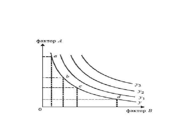 Изокванты • • Изокванта представляет собой кривую на которой расположены все сочетания производственных факторов, обеспечивающих одинаковый выпуск продукции или равных продуктов. Наклон изокванты выражает зависимость одного фактора от другого в производственном процессе. Отражает • различные комбинации факторов производства, которые могут быть использованы для выпуска данного объема продукта. • замену одного фактора другим. • Увеличение одного фактора и уменьшение другого не вызывает изменений в объеме выпускаемой продукции. Пример Компания производит 10000 ед. продукции (жевательной резинки) используя (L) и (К)