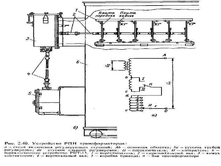 Для нормальной работы потребителей необходимо поддерживать опр. уровень напряжения на шинах подстанций В эл. сетях предусматриваются способы регулирования напряжения • изменением коэффициента трансформации трансформатора Тр. выполняют с переключением ответвлений обмотки без возбуждения (ПБВ), т. е. после отключения всех обмоток от сети, и с переключением ответвлений под нагрузкой (РПН) Схема регулирования напряжения ПБВ с трехфазным переключателем: 1 — неподвижный контакт; 2 — сегмент контактный; 3 — вал переключателя.