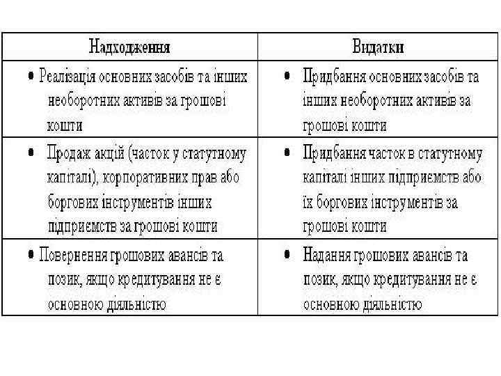 Операційна діяльність – основна діяльність підприємства, а також інші види діяльності, які не є інвестиційною чи фінансовою.