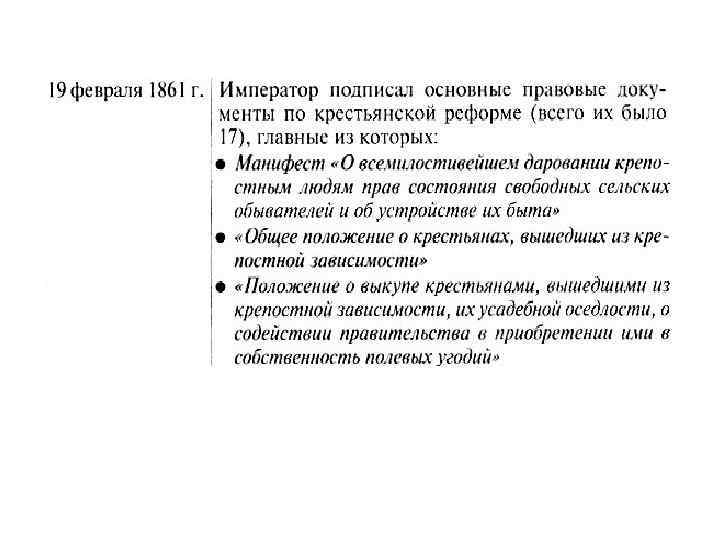 Александр II Николаевич Освободитель (1818 -1881, император с 1855) • В 1856 г. был организован секретный комитет "для обсуждения мер по устройству быта помещичьих крестьян". • Александр II обратился с речью к представителям дворян Моск. губ. : "Существующий порядок владения душами не может остаться неизменным. Лучше начать уничтожать крепостное право сверху, нежели дожидаться того времени, когда оно начнет само собой уничтожаться снизу".