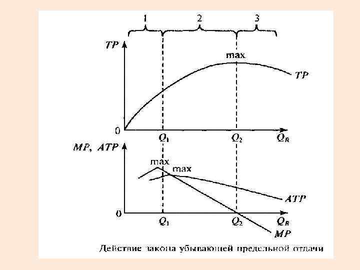 Закон убывающей отдачи или предельной производительности После достижения определенного объема производства дальнейшее последовательное присоединение единиц переменного ресурса к предыдущему объему ресурса дает все более уменьшающийся добавочный (предельный) продукт в расчете на каждую последующую единицу переменного ресурса.