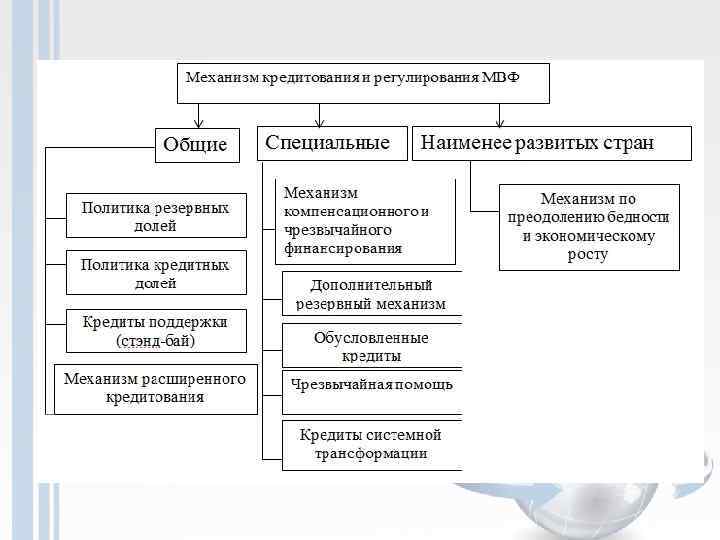 Изменение структуры регулирующих и кредитующих наднациональных организаций • В основу новой концепции регулирования МФР были положены идеи монетаристов, а сам фонд стал не только регулировать международный кредитный рынок, а в рамках монетаристских идей разрабатывать и внедрять стабилизирующие программы на национальных кредитных рынках стран участниц МВФ. • Основной смысл этих программ состоял в финансовой стабилизации национальных кредитных рынков и либерализации внешнеэкономических связей этих стран.