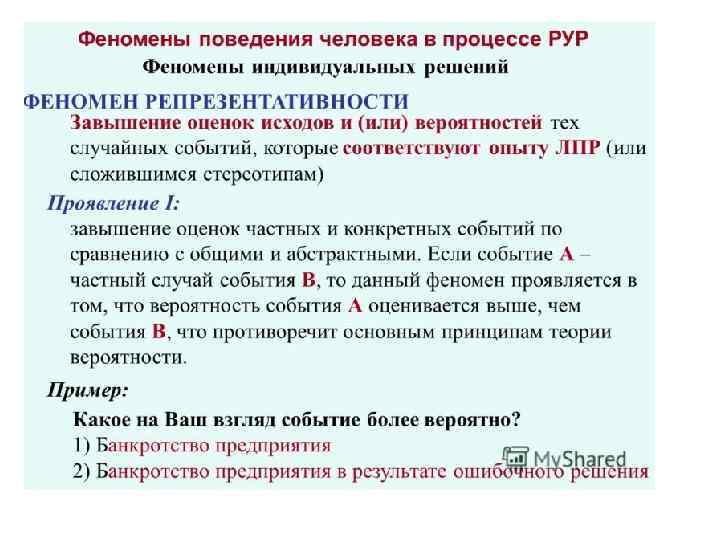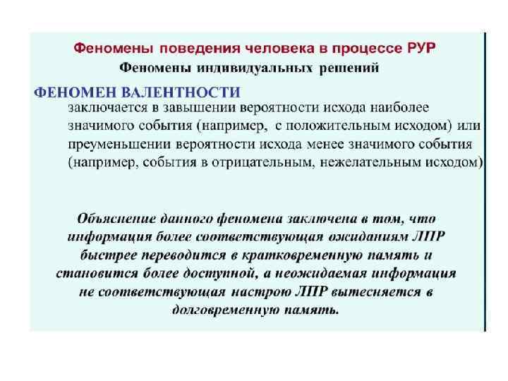 2 вопрос • Психологическая теория решений • 2. 1 феномены индивидуальных решений