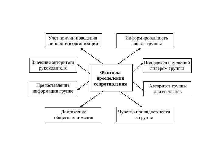 Трехступенчатая модель (американский социолог К. Левин) 1. «Размораживание» предполагает принятие мер, которые позволили бы работникам отказаться от существующей практики или корпоративных культурных норм при подготовке к изменениям. 2. Движение к новому уровню уже предполагает необходимые изменения. На изменение внутренних систем (таких как системы качества или новые информационные системы) уходит меньше времени, изменение корпоративной культуры происходит в течение нескольких лет. 3. «Застывание» ( «замораживание» , «блокирование» ) необходимо для того, чтобы зафиксировать изменения и не допустить, чтобы организация вернулась на старые позиции. Наиболее часто «цементирования» требуют именно культурные изменения.