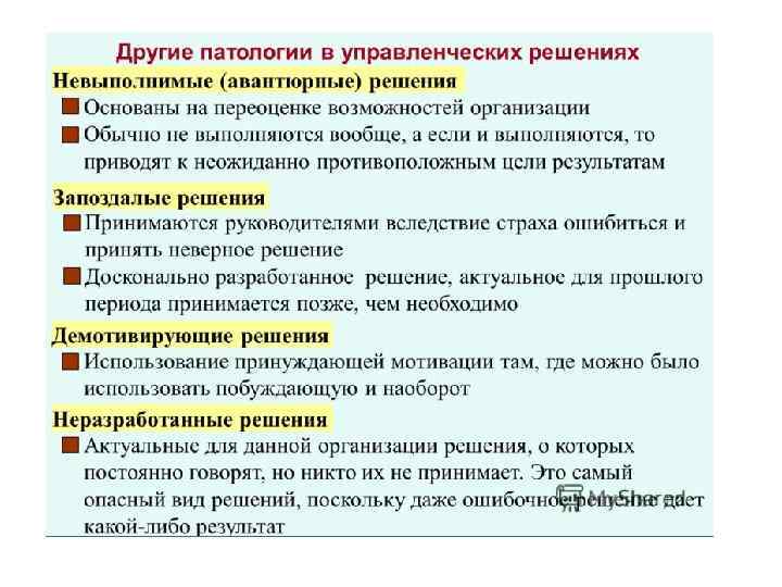 1 вопрос • Понятие и виды патологий в управленческих решениях (УР)