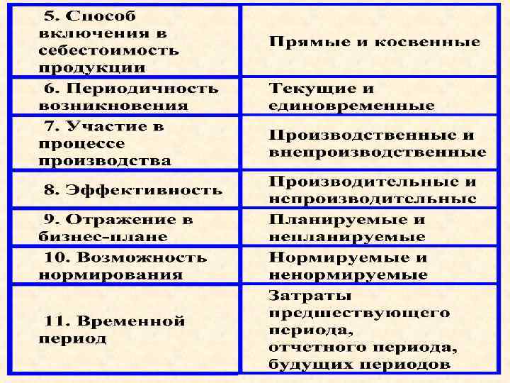 5. Отчисления на социальные нужды 6. Расходы на подготовку и производства 7. Общепроизводственные расходы 8. Общехозяйственные расходы 9. Потери от брака 10. Прочие производственные расходы 11. Расходы на продажу освоение